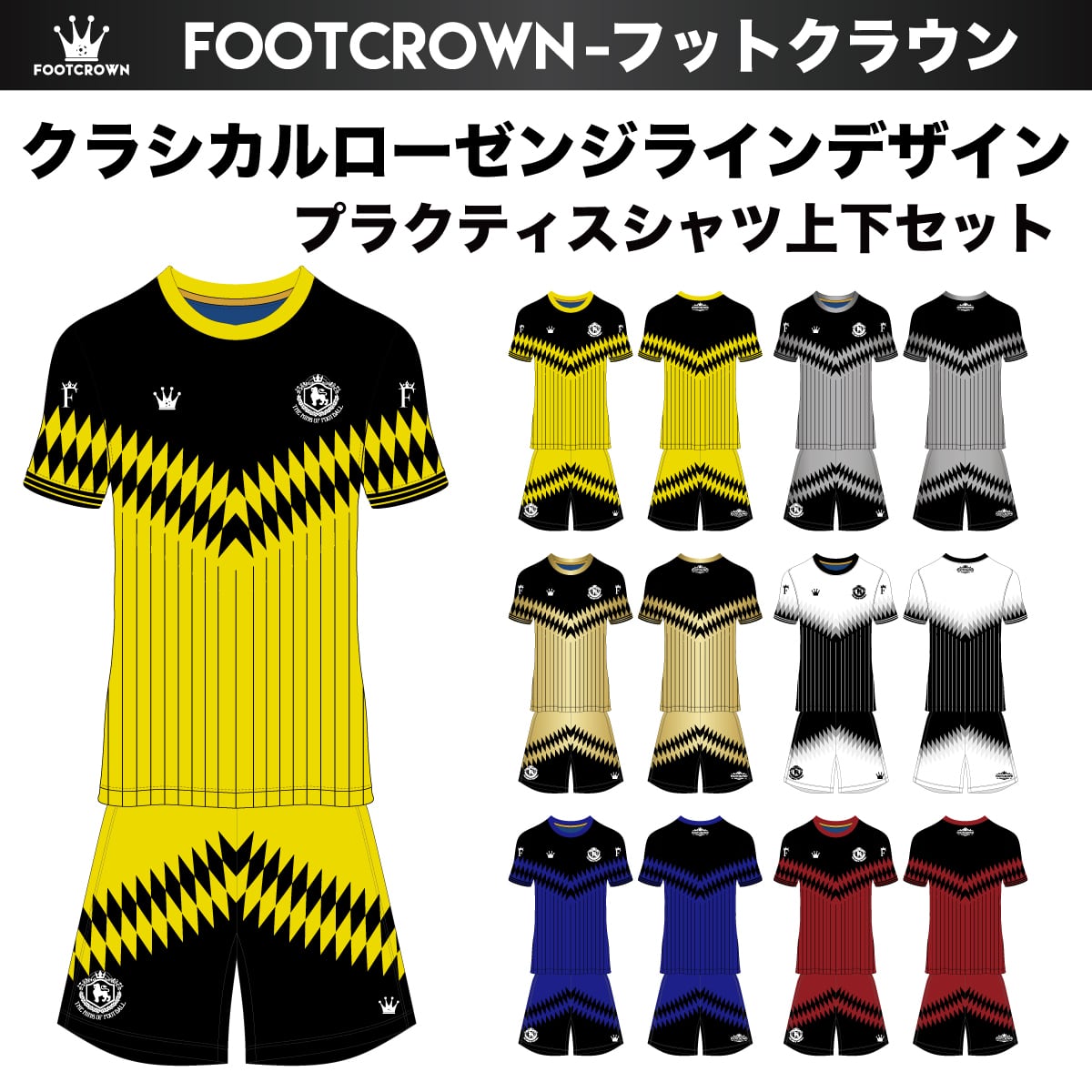 「クラシカルローゼンジライン」は、連続する菱形(Lozenge)パターンをシャープに配置した、クラシカルでありながら攻撃的なデザインのユニフォームです。