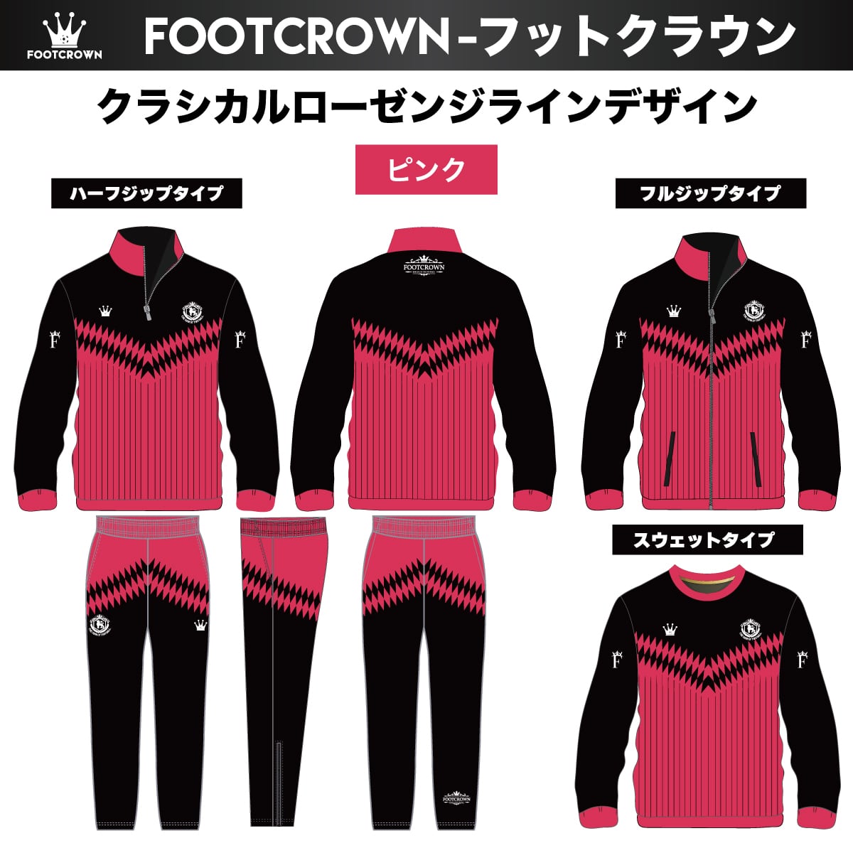 昇華ジャージ上下セット "クラシカルローゼンジラインデザイン" セットアップ 選べるジップタイプ  120~4XL対応 春夏用 秋冬用