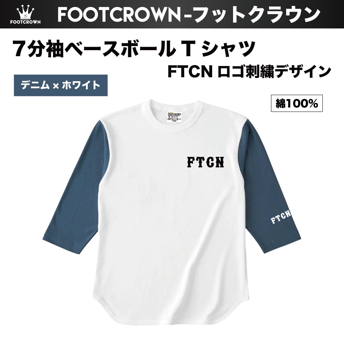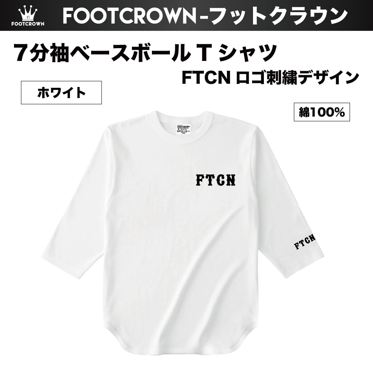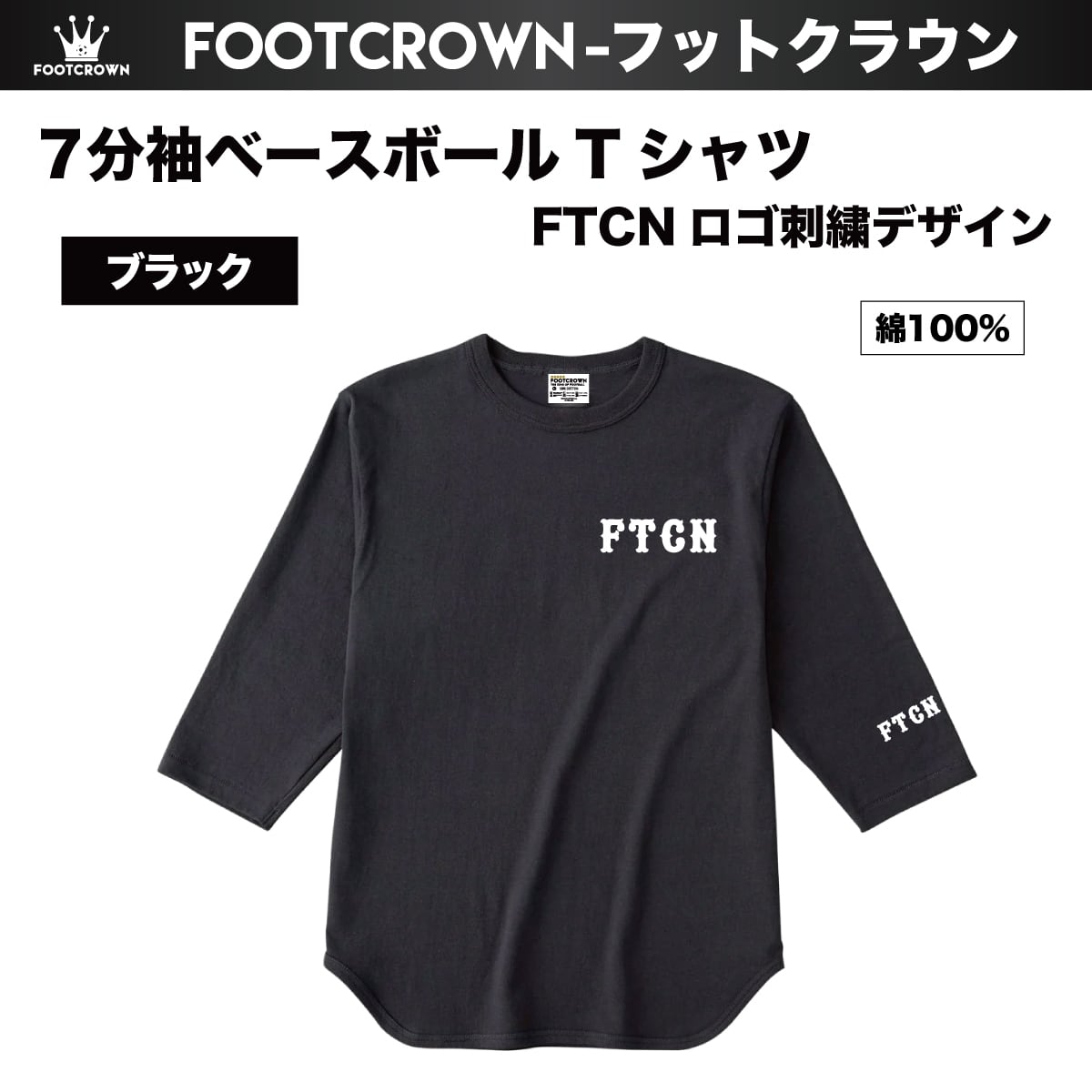 7分袖ベースボールTシャツ FTCN 刺繍ロゴ