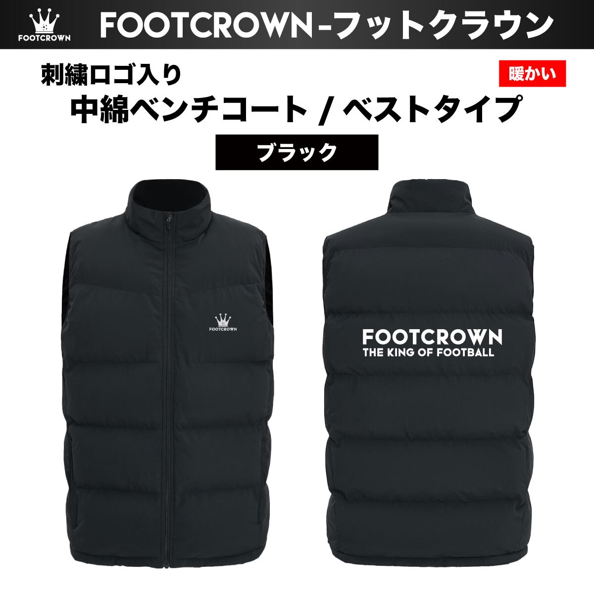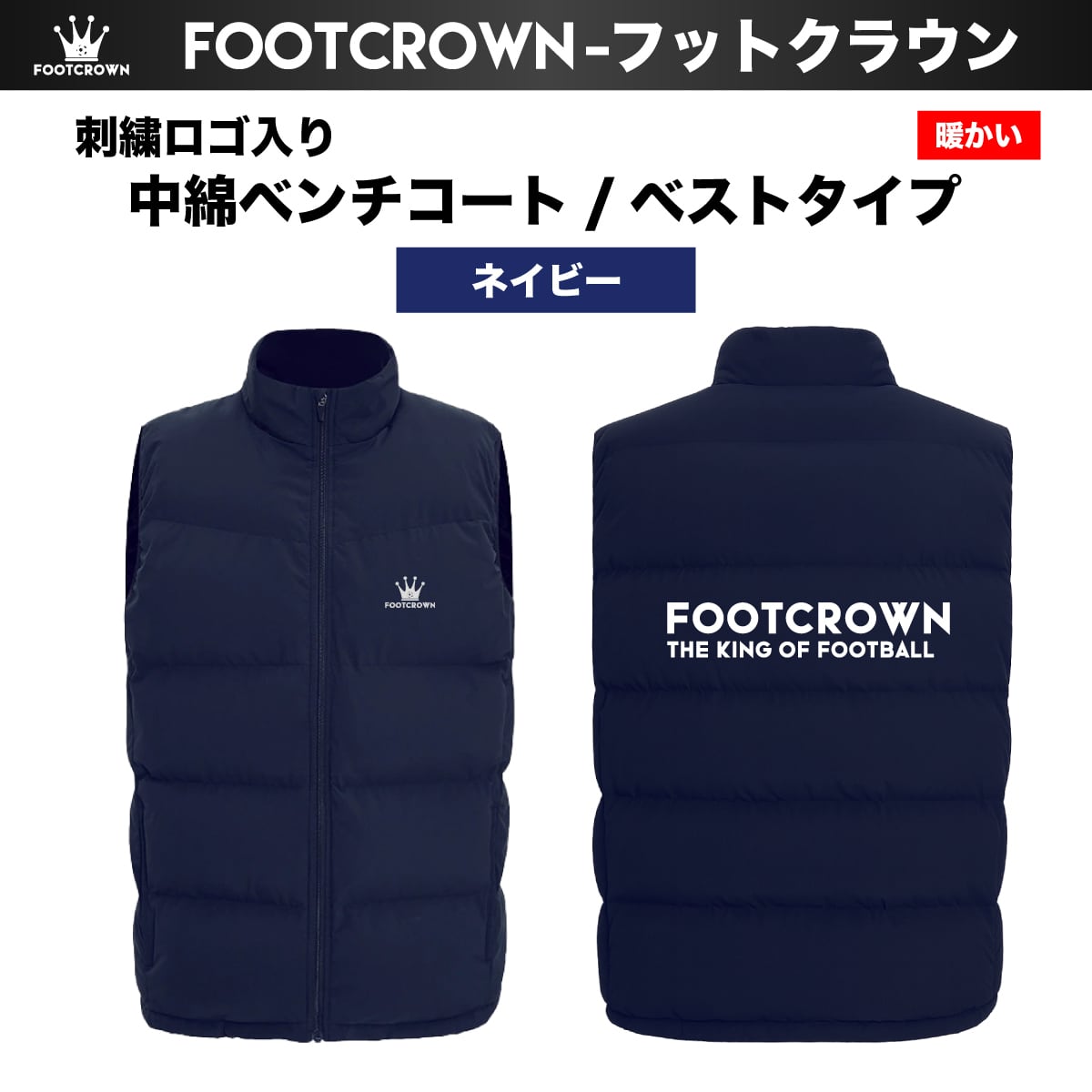 中綿ベンチコート ベストタイプ 刺繍ロゴ Sサイズ~4XLサイズ 秋冬 【定番】