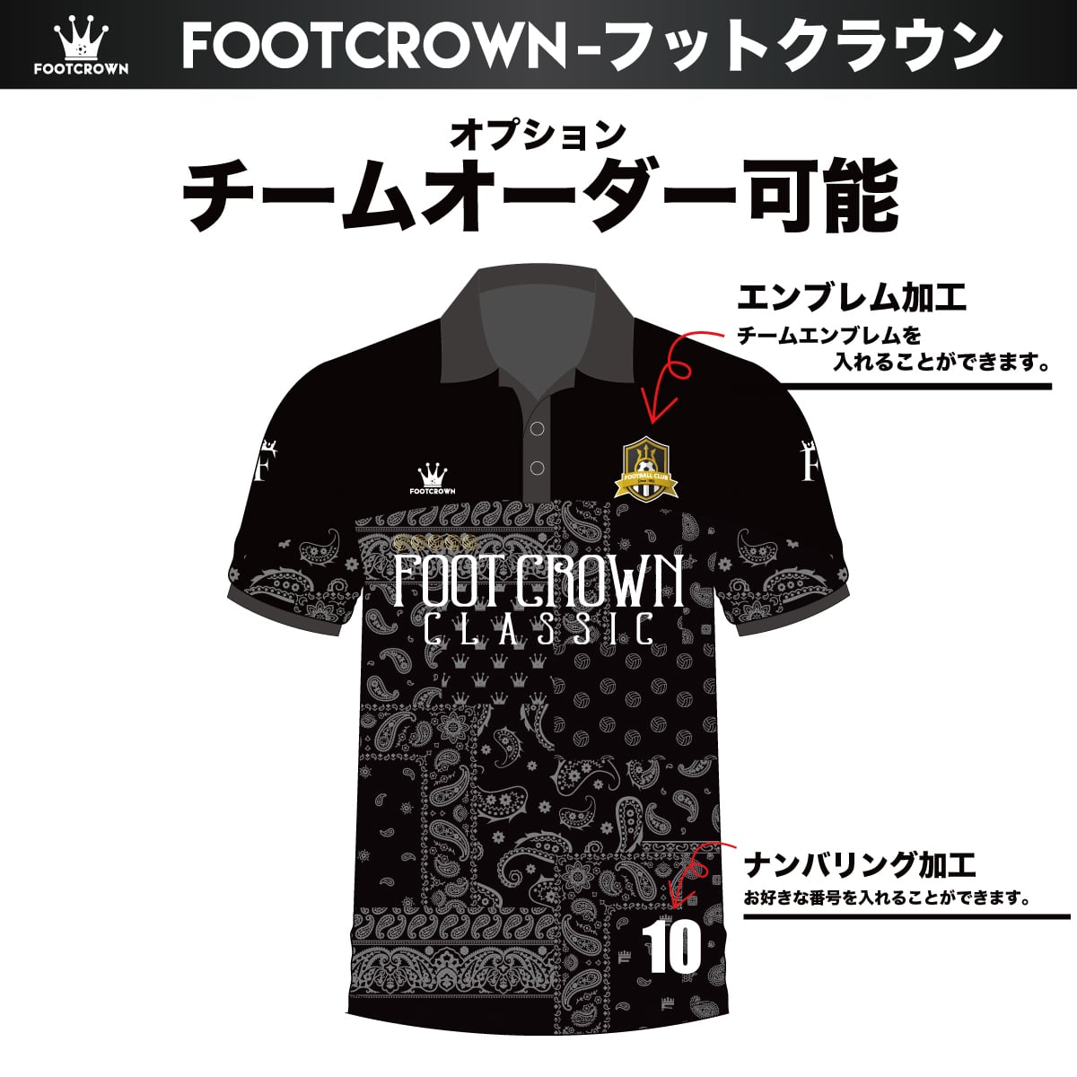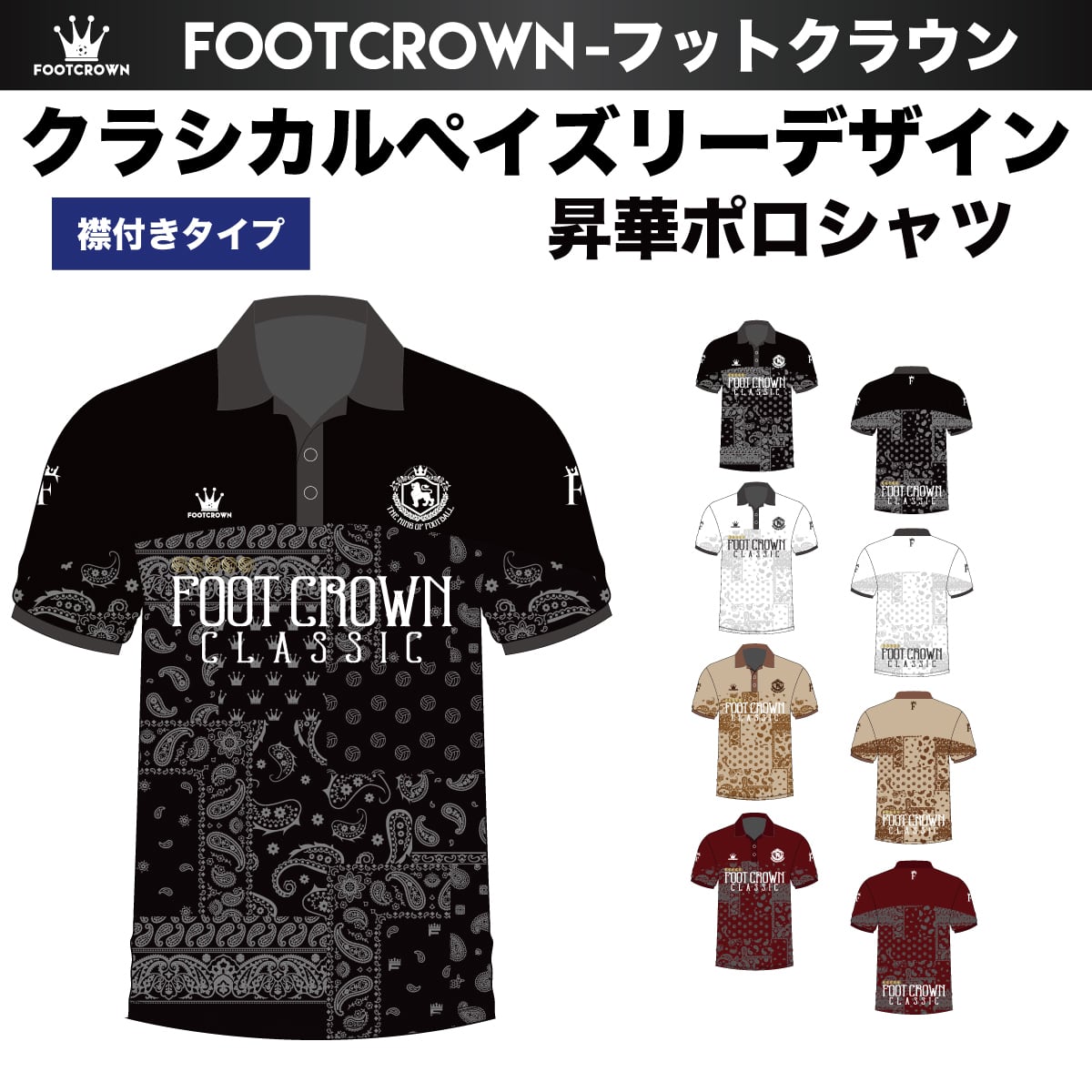 昇華ポロシャツ "クラシカルペイズリーデザイン" 半袖・長袖 チームオーダー対応 130~4XL 襟付き