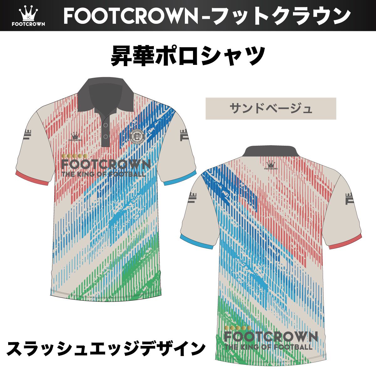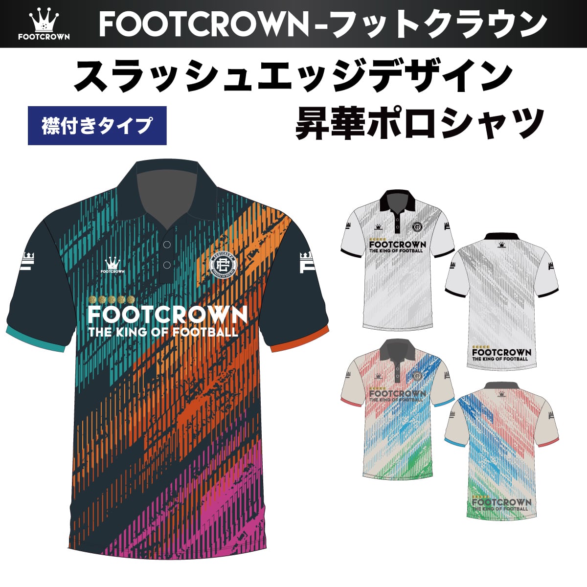 昇華ポロシャツ "スラッシュエッジデザイン" 半袖・長袖 チームオーダー対応 130~4XL 襟付き