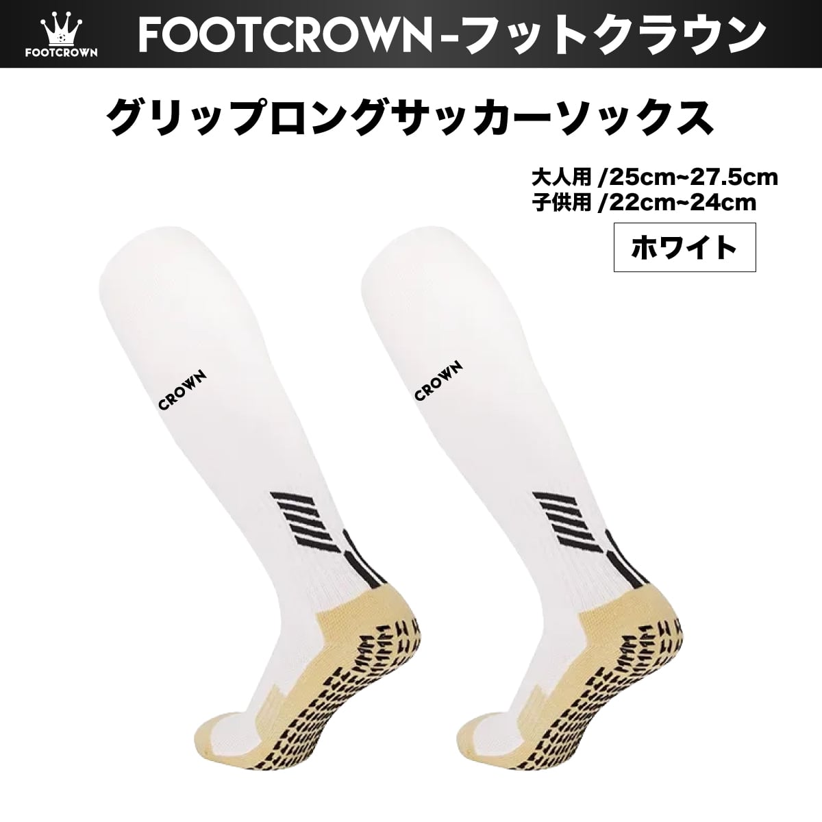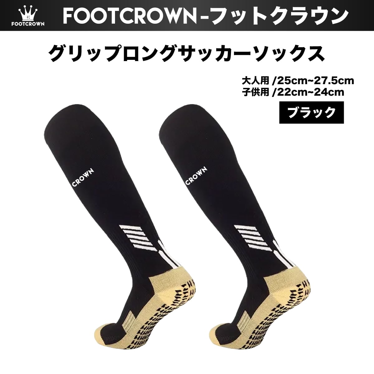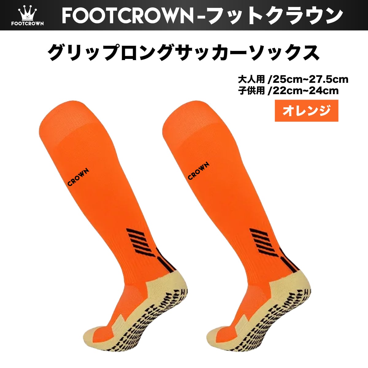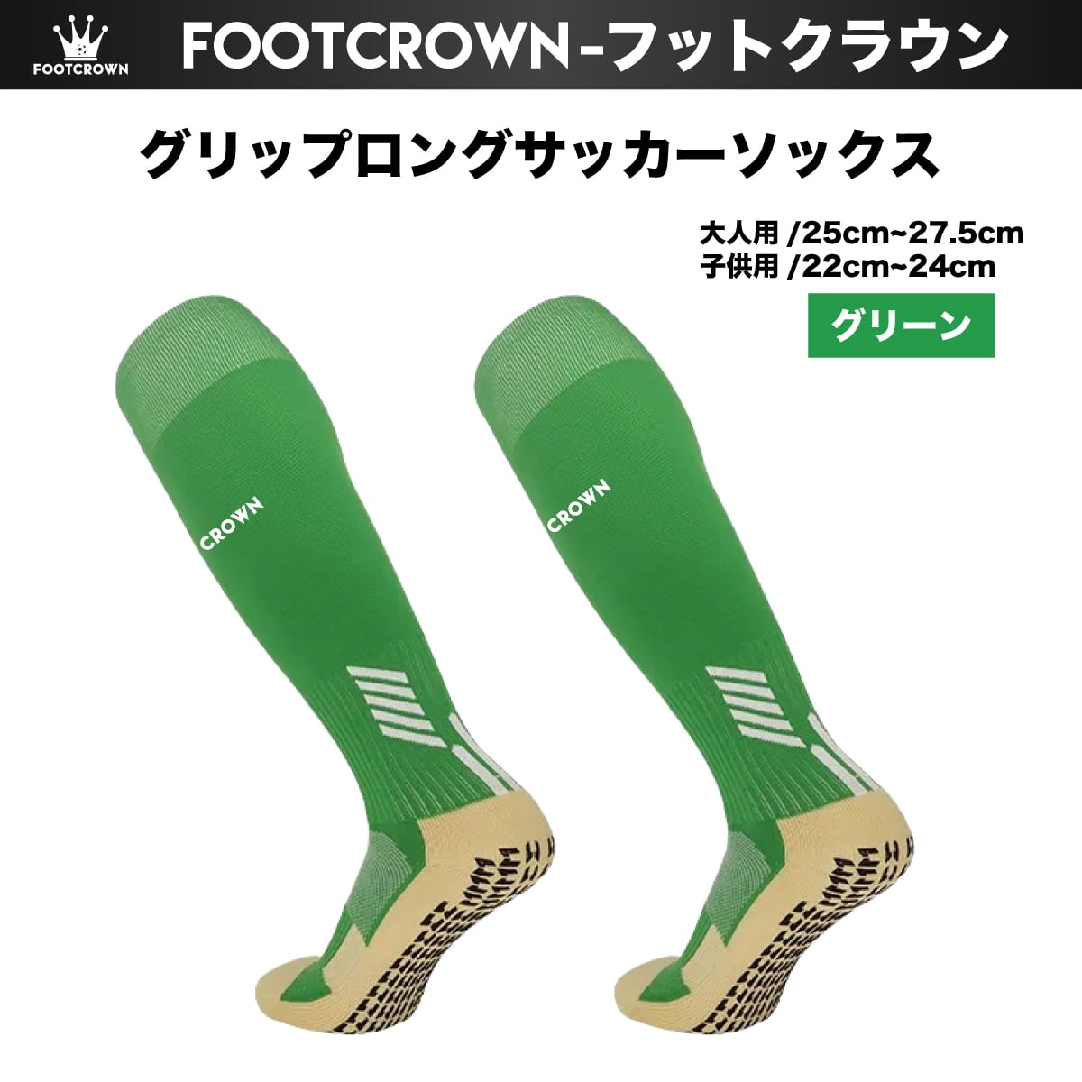 フットクラウン ロゴ入り FOOTCROWN グリップロングソックス 無地 サッカーフットサル ソックス