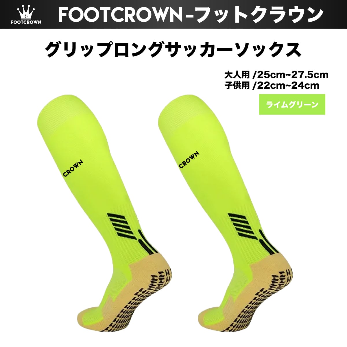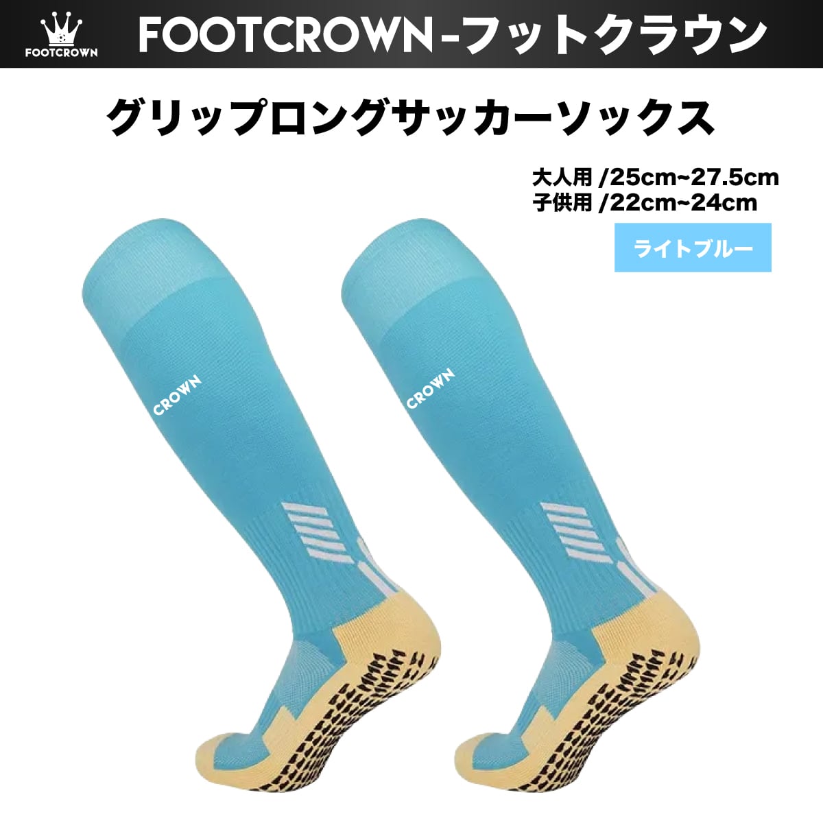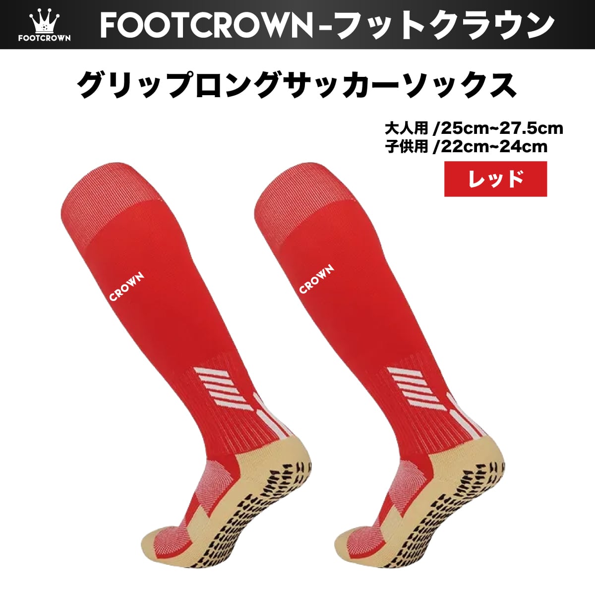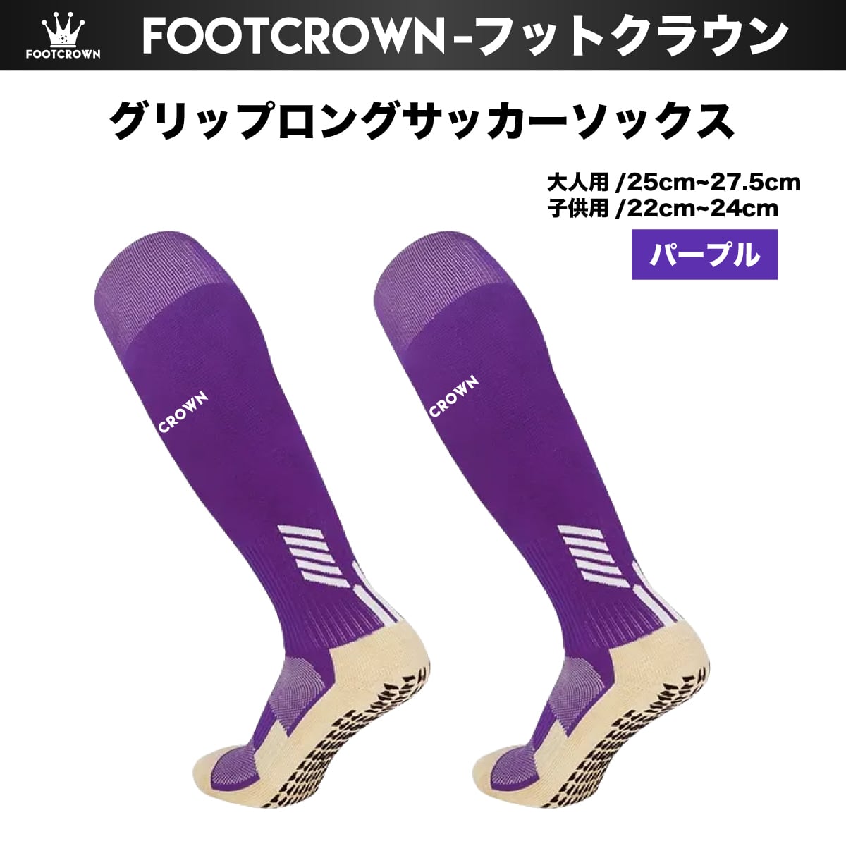 フットクラウン ロゴ入り FOOTCROWN グリップロングソックス 無地 サッカーフットサル ソックス