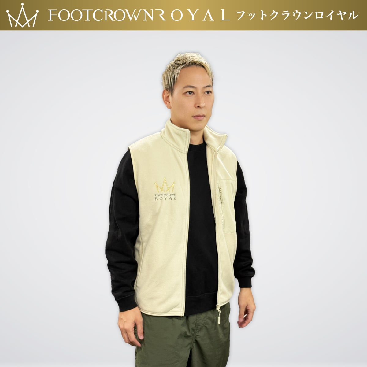 フットクラウンロイヤル 刺繍ロゴ フルジップフリースベスト M~2XL